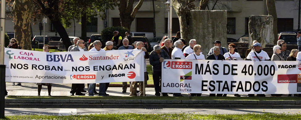 «Es una tomadura de pelo. Nos quieren quitar nuestro dinero», comenta indignado Ricardo González de Durana, presidente de Kalketuak, una de las asociaciones de afectados que se está movilizando contra Eroski y contra las entidades financieras que comercializaron este producto.