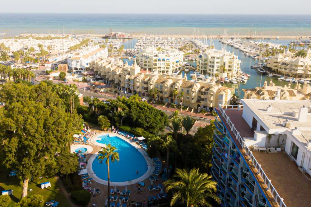 Vista aérea de un hotel en Benalmádena (Málaga). Imagen: Aehcos