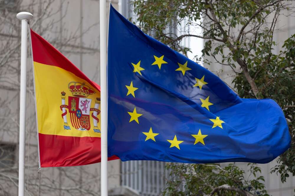 La bandera de España y de la Unión Europea