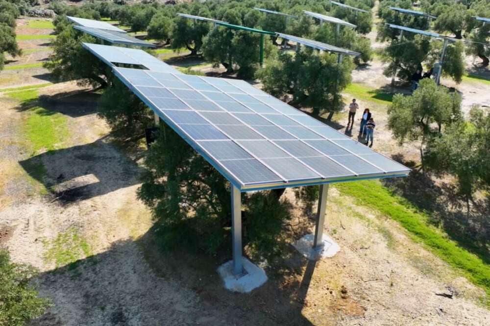 La instalación, ubicada en Vilches (Jaén), cuenta con más de 5.150 paneles solares sobre estructuras elevadas que permiten mantener intacta la recolección del cultivo