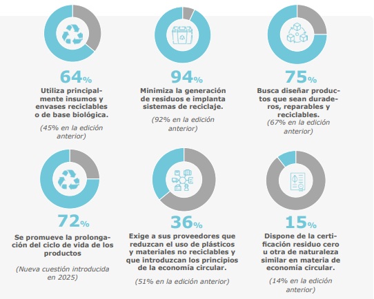 Los datos facilitados por las 53 empresas que participaron en la última edición del Atlas indican un importante avance en la integración de la economía circular en aspectos como la utilización de insumos reciclables, que ha pasado del 45% al 64%.