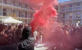 Un grupo de jóvenes del SEPC, el sindicato estudiantil vinculado a la CUP, atacan la carpa informativa de los jóvenes constitucionalistas en la universidad catalana
