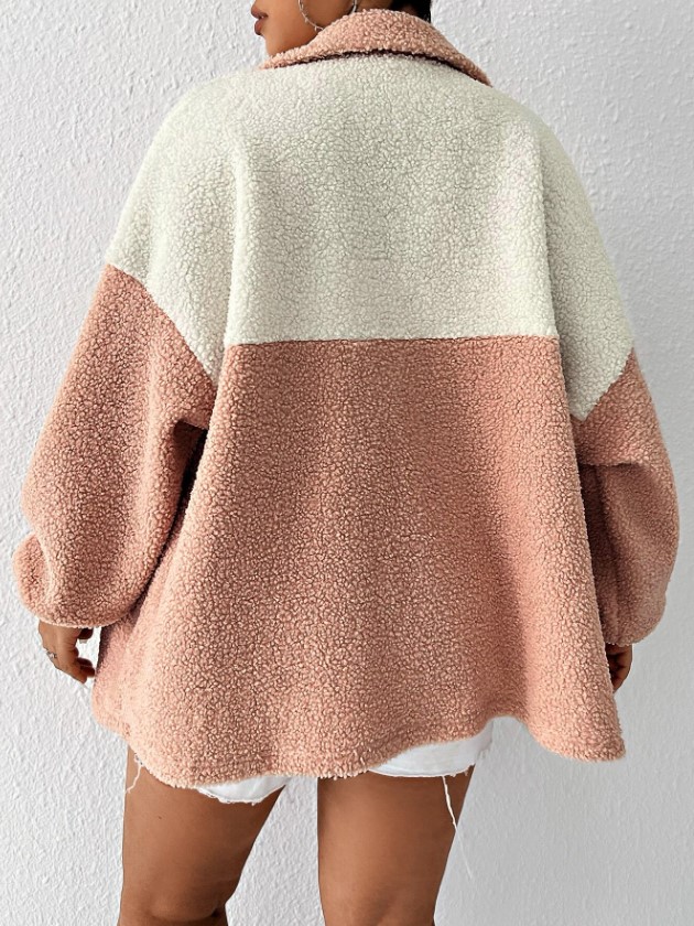 Uno de los productos que ha conseguido llamar nuestra atención, es un abrigo de borreguillo a dos tonos con diseño oversize, muy cómodo y combinable especialmente con looks desenfadados. Está disponible en los tonos rosa y blanco crudo combinados en un estilo de lo más cozy, ideal para días fríos.
