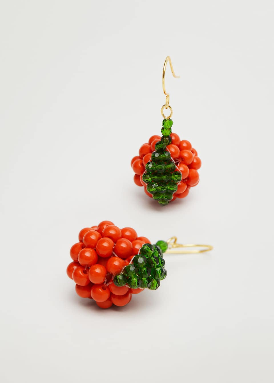 Otra opción de pendientes de Mango que te proponemos son estos que son una opción muy alegre y divertida. Unos pendientes con forma de fresita en color rojo, hechos con una combinación de abalorios de cristal y con un cierre de gancho. Su precio es de 9.99 euros.