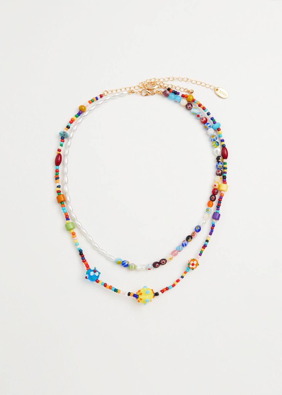 Sobre todo para vestidos y look básicos este tipo de accesorios son ideales para levantar nuestros looks a otro nivel. La primera opción de Mango que te proponemos es un collar de abalorios de cristal y de cerámica. Tiene un diseño multicolor, con cierre de cadena y mosquetón. Tiene un claro estilo boho que es ideal para el verano. Su precio es de 15.99 euros.