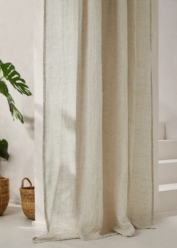 Otro elemento destacado son las cortinas de 100% lino. Confeccionadas en un tejido de lino de alta calidad, estas cortinas ofrecen un toque de sofisticación y estilo a cualquier habitación. Disponibles en color gris claro o pastel, añaden un aire de frescura y luminosidad a tu hogar. Con un tamaño de 145x260cm y un precio de 59,99 euros por unidad, estas cortinas son una inversión elegante para cualquier ventana.