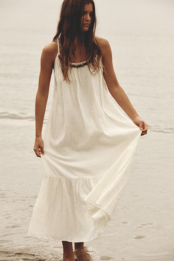 Su característica más destacada es la aplicación de monedas, que añade un encanto bohemio y sofisticado. Con un forro interior que proporciona comodidad, este vestido de Zara es una elección atemporal que fusiona la elegancia con un toque distintivo, y la rebaja actual lo convierte en una adquisición aún más cautivadora. Un must-have para aquellas que buscan un look chic y lleno de personalidad ahora por 19,99 euros.