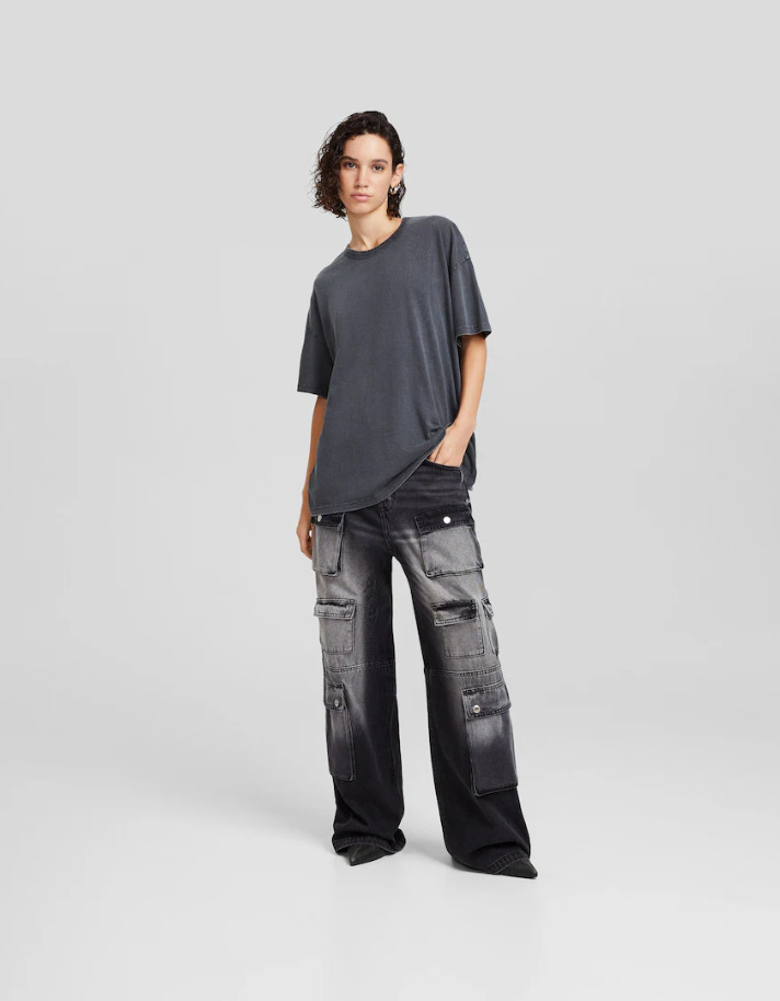 Los pantalones estilo cargo ya se convirtieron durante el pasado otoño en toda una tendencia, y parece que aún se sigue manteniendo incluso en verano. Estos pantalones anchos al más puro estilo street son comodísimos de llevar, con un corte tipo cargo y multibolsillos de lo más funcionales a lo largo de su diseño. Están disponibles tanto en azul oscuro como en azul claro a un precio de 39,99 euros.