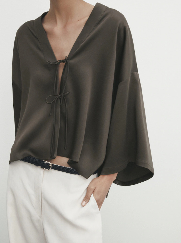 La camisa para mujer de Massimo Dutti estilo kimono con tejido satinado