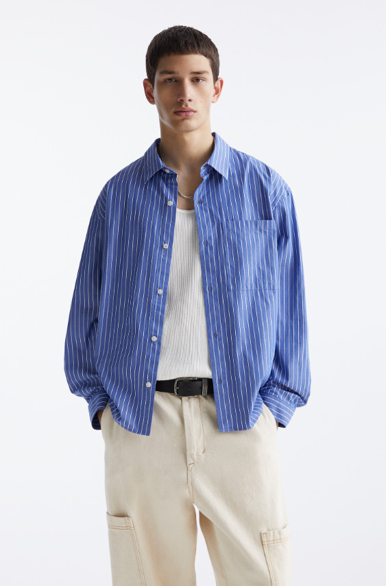 Una de las piezas más destacadas de esta colección es la camisa cropped de rayas. Confeccionada en 100% algodón, esta camisa de manga larga y cuello clásico presenta un diseño moderno y urbano. Su corte cropped añade un toque de originalidad, mientras que sus rayas verticales en contraste aportan un estilo atemporal. Disponible por 25,99 euros, esta camisa es la elección perfecta para aquellos que buscan un look fresco y contemporáneo.