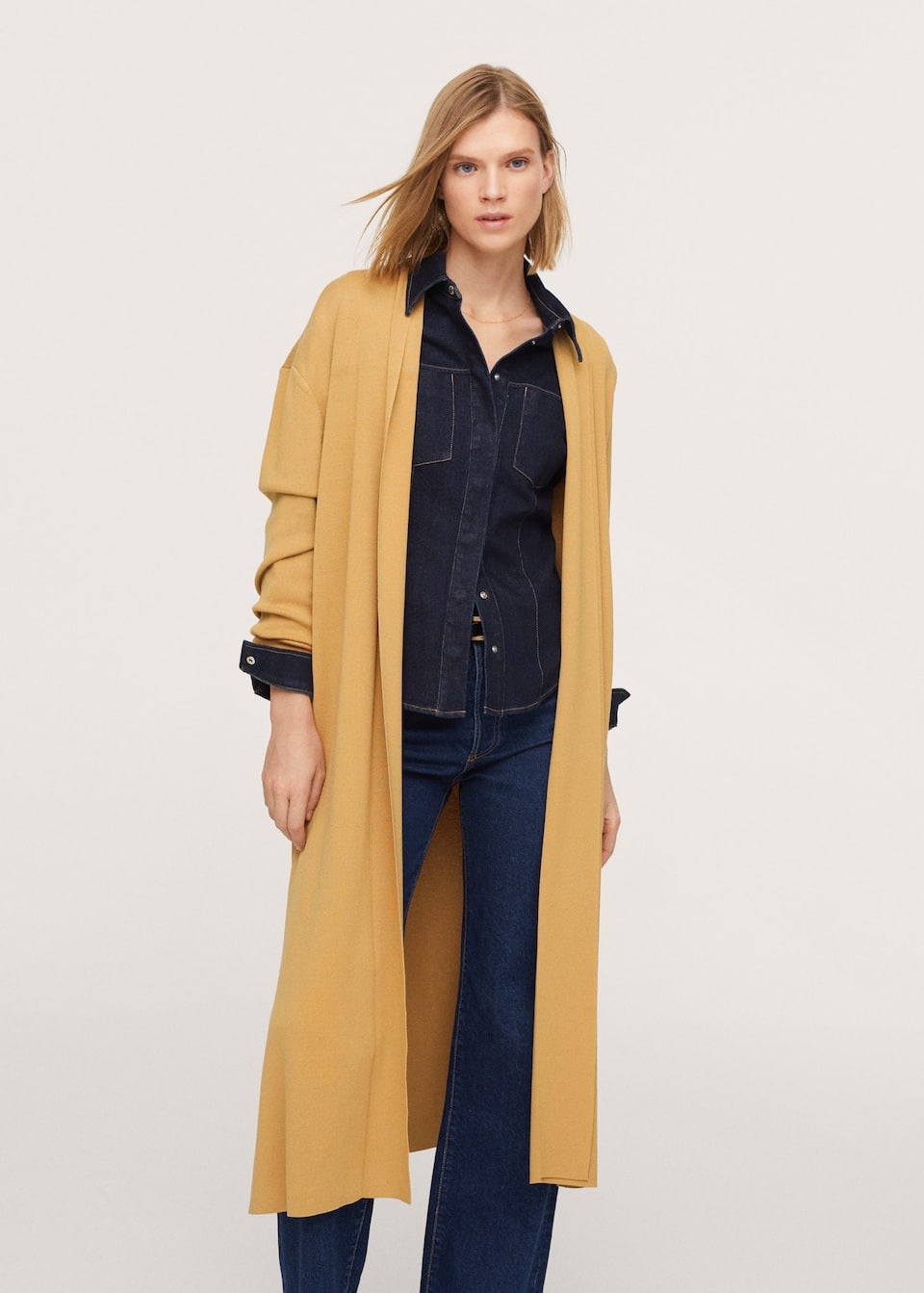 El cárdigan de Mango está fabricado en un tejido de punto fino, con cuello cascada y un diseño oversize. Con un corte largo, cuello abierto y manga larga. También tiene aberturas laterales en el bajo y es sin cierre. Esta disponible en dos colores en ocre y en negro pero el ocre es clave para estás fechas. Podrás conjuntar ese cárdigan con prácticamente todo ya que es un tono que queda genial con los principales colores de la temporada estival. Con un diseño muy clásico y elegante es un básico de armario indiscutible no solo para las que veranean en el norte sino para esas noches donde las temperaturas caen.