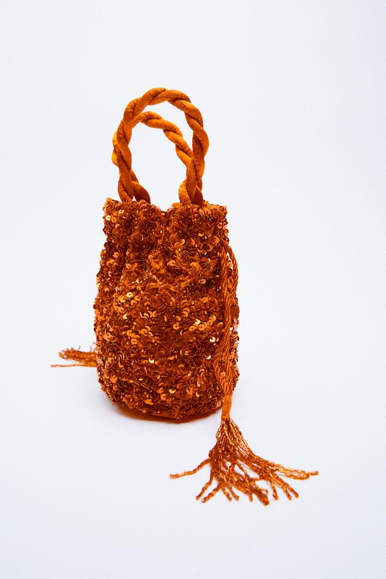 Otra opción para lucir el color de la temporada pero no en la ropa es apostando por los accesorios y en Zara tienen un bolso que te lo querrás poner hasta para ir a por el pan. Este bolso con formato saca y con cuerpo de lentejuelas también tiene un detalle de flecos en los laterales. Con asas de mano trenzadas y asa de cadena función bandolera. Tiene un 17 x 16 x 10,5 cm por lo que es ideal para una ocasión especial o con un look total blanco. Su precio es de 29.99 euros.