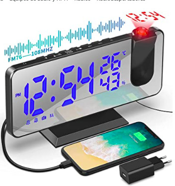Se trata del Despertador de Proyección 7.5 Pulgadas Digital 180° Rotativo de la marca Takrink. Un despertador que, como bien podemos ver en este enlace, tiene ahora un precio de tan sólo 27,99 euros y que puede presumir de muchas cosas.