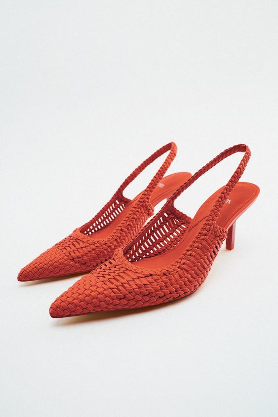 Una buena combinación como en el video es un una blusa blanca que también es muy ponible y con la llegada del verano también es un buen básico. Este Top de escote fluido y tirantes finos cruzados en espalda de Zara esta disponible en las tallas S, M, y L, cuesta sólo 12.95 euros . Pero lo mejor de este look son los zapatos de tacón destalonado trenzado de Zara con plantilla técnica flexible de espuma compuesta de látex, diseñada para ofrecer un mayor confort. En color rojo coral cuesta 45.95 euros.