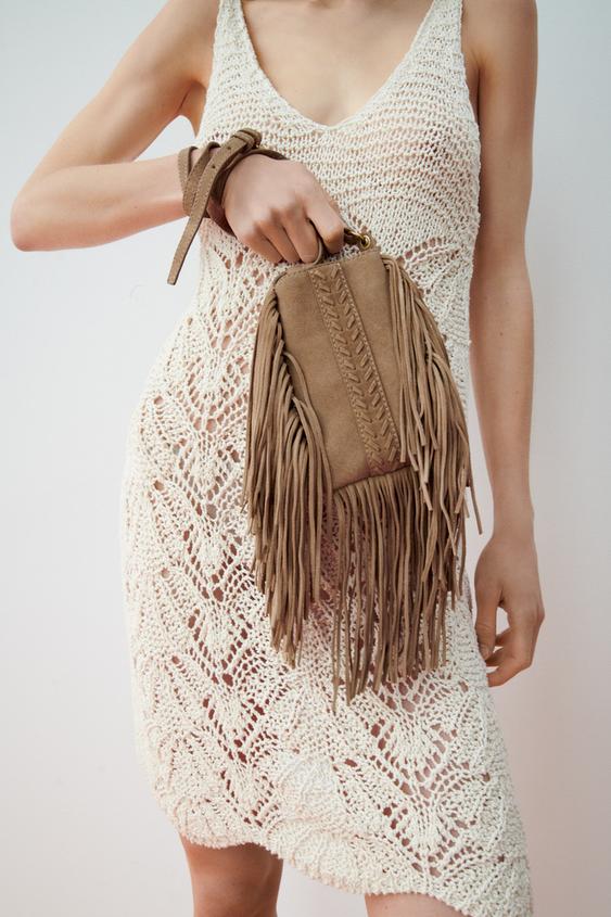 Si eres de las que ni en un festival le gusta perder ni un ápice de glamour y no te gusta llevar riñonera tenemos el bolso más festivalero, es ideal por muchas cosas pero sobre todo porque es pequeñito y en él te cabe lo justo y necesario. Así podrás disfrutar de tu festival sin ir cargando con un bolso que muchas veces es un incordio. Este bolso perfecto para un festival es en realidad un porta móvil de serraje con detalle de flecos en el cuerpo, tiene el interior forrado, una asa función bandolera ajustable y cierre metálico. Es también de Zara y su precio es de 35.95 euros.