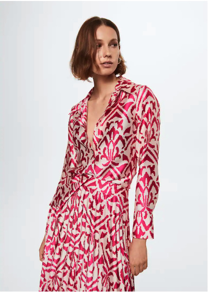 El print es un diseño geométrico y desigual en color rosa fuerte sobre un fondo blanco, la combinación es increíble y el toque brillante le da esa versatilidad: puedes usarlo hasta como look de invitada. En la página web se encuentra ‘disponible plus’ por tan solo 29,99 euros y en tallas desde la XXS hasta la 4XL ¡para todo tipo de cuerpos!