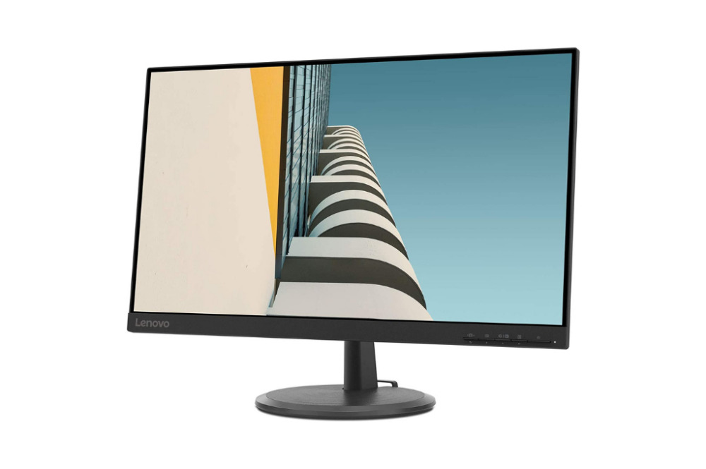 El monitor de Lenovo cuenta con una pantalla de 23.8 pulgadas con resolución FullHD (1920×1080 pixeles) y una precisión del color NTSC al 72%, antirreflejos. Relación de aspecto 16:9, tiempo de respuesta de 4ms y frecuencia de actualización de 75Hz. Incluye puertos HDMI y VGA.