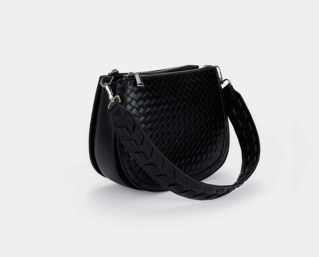 Este bolso de Parfois destaca por el asa de hombro trenzada y el asa bandolera, ambas extraíbles. En su interior ofrece hasta tres compartimentos, dos de los cuales se cierran con cremallera. El otro usa un cierre metálico de imán y suma un bolsillo interior. Y su diseño se completa con una base curvada en forma de media luna.
