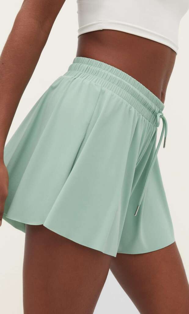 ¿Quién dijo que ir vestida con tu ropa de deporte no puede ser estiloso? Estos pantalones cortos de tejido fluido son una de nuestras propuestas favoritas dentro de la sección deportiva de Stradivarius. Se trata de unos shorts de tiro alto con cintura elástica y cordón a tono. Son de lo más cómodos gracias a su tejido suave y elástico y están disponibles en varios colores a un precio de tan solo 15,99 euros.