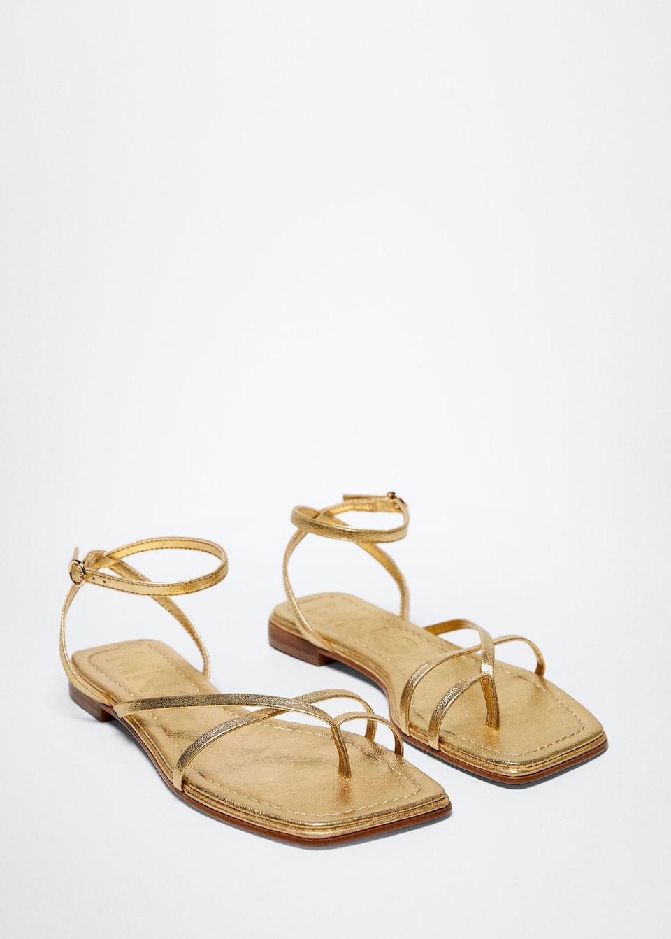 El calzado por excelencia de los meses de verano ya que pega con todos tus vestidos de temporada, largos, midi y mini así como con faldas, pantalones, con monos, con vaqueros. La primera opción que te proponemos es un básico absoluto de todas las temporadas, una sandalia en un color oro con un diseño de tiras flat y con punta cuadrada. Además de con una pulsera en el tobillo y cierre de hebilla. Su precio es de 29.99 euros y estás disponibles en Zara.