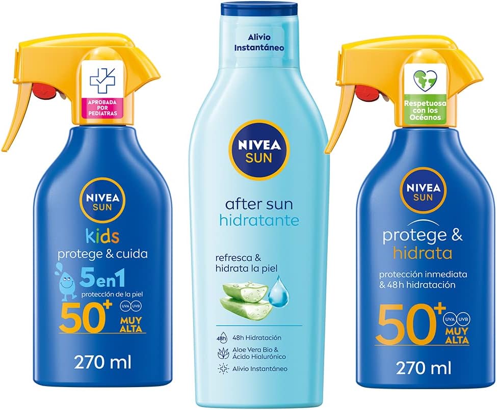 El protector solar Nivea Sun está especialmente diseñado para los niños. Con pantenol y vitamina E, esta crema solar protege la piel delicada de los niños de la radiación solar, hidratando de forma profunda y duradera, gracias a su protección UVA/UVB, que mantiene los niveles de hidratación y reduce la pérdida de agua.