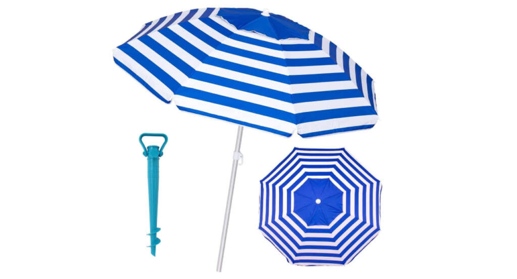 No obstante la mejor protección es que no te dé el sol en lugares como la playa es con una buena sombrilla. En Amazon lo saben y por eso tienen su sombrilla más vendida por 27,95 euros.