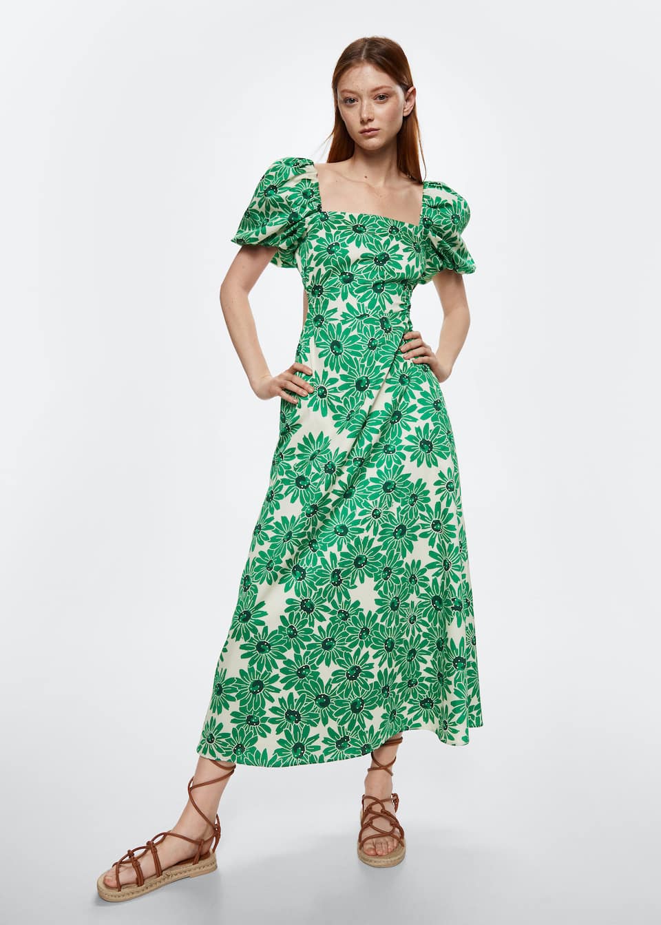 En Sicilia en una finca en mitad del campo y a 20 minutos del mar tuvo lugar esta presentación a la que a todos nos hubiese gustado estar invitados. Una de las prendas que más nos ha gustado de está nueva colección de Mango ha sido un vestido hecho con 100% de algodón, con un estampado de flores y margaritas. Un diseño midi y evasé, con cuello cuadrado, manga corta abullonada, puños y panel elásticos. Tiene una abertura posterior, fruncido elástico y forro interior.