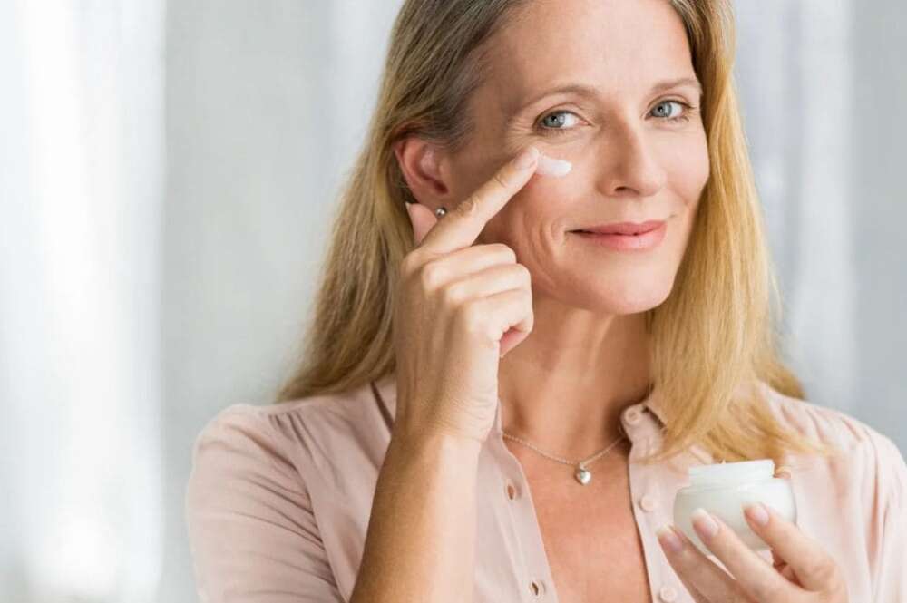 Mujer aplicándose una crema antiedad