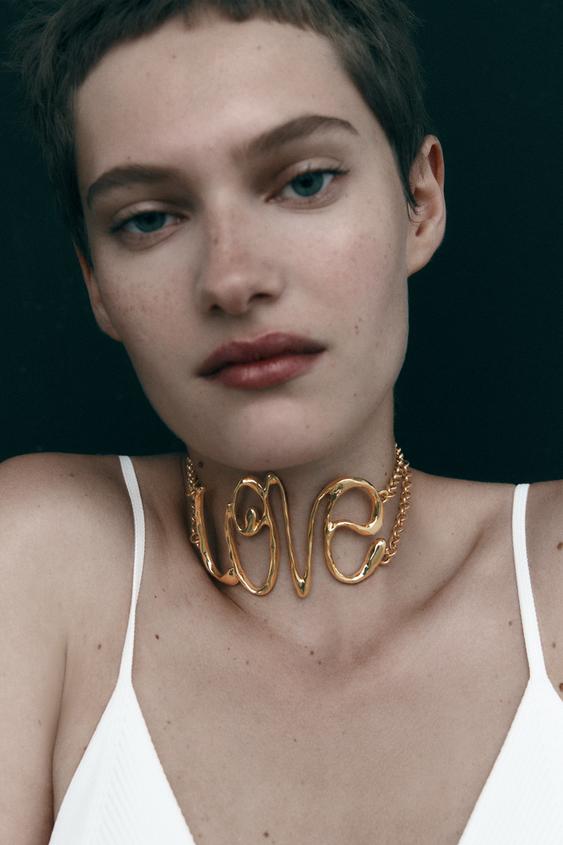 Si te gusto la idea del choker de love en Zara también tienen un choker de mariposa en un tono dorado. Un modelo metálico y con cierre con mosquetón. Una buena opción para usarlo es como que nos proponen en la marca de Inditex, con una camisa y con un pantalón vaquero o un pantalón de traje. Su precio es de 15.95 euros.