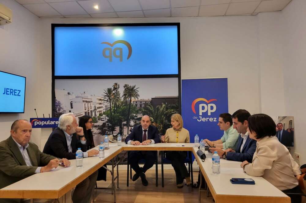 El presidente de ATA, Lorenzo Amor, en una reunión con la alcaldesa de Jerez, María José García-Pelayo, y representantes del PP de Jerez.
