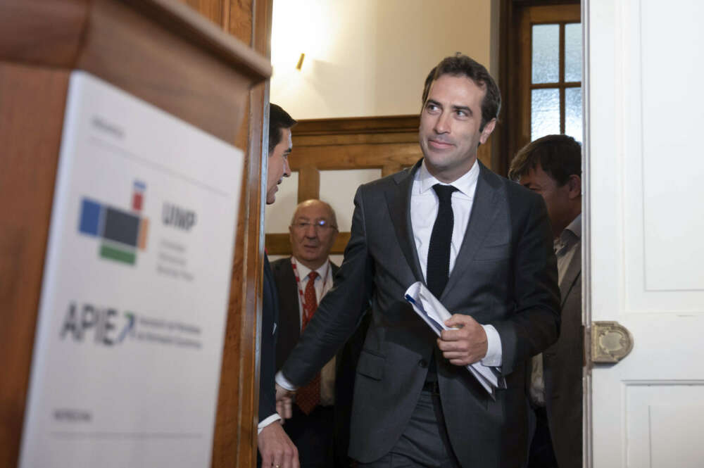 El ministro de Economía, Comercio y Empresa, Carlos Cuerpo, durante la inauguración del XLI Seminario de APIE «El rol de las empresas en la nueva economía» de la UIMP este lunes en Santander. EFE/Pedro Puente Hoyos