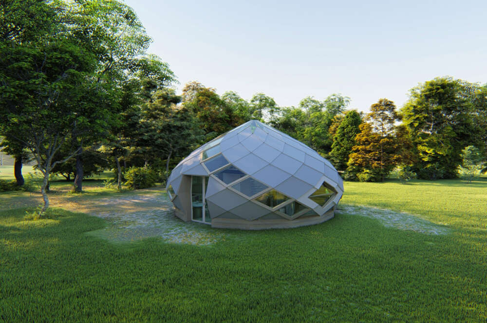 Su diseño, con su revestimiento de zonoedros polares, logra que su superficie sea un tercio menor que cualquier casa tradicional de diseño rectangular.