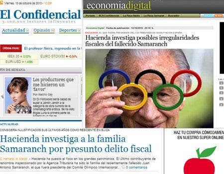 La información exclusiva sobre las investigaciones que realiza Hacienda a la familia de Juan Antonio Samaranch publicada el pasado 13 de octubre por Economía Digital ha sido divulgada hoy, 15 de octubre, por El confidencial, que se la atribuye como propia e incluso aparece insertada en la sección “En exclusiva”.