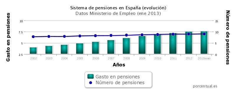 La seguridad Social ha destinado 7.653 millones de euros en enero a pagar las pensiones contributivas, lo que supone un incremento del 4,8% este enero respecto al mismo mes de 2012.