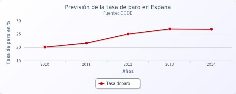 Como consecuencia de la «intensificación de la recesión» prevista para el próximo año, la OCDE prevé que la tasa de paro suba hasta el 26,9% en 2013, frente al 25% estimado para el cierre del presente ejercicio, nivel récord del que sólo bajaría marginalmente en 2014, cuando se situaría en el 26,8%, de nuevo únicamente por debajo de Grecia (27,2%).