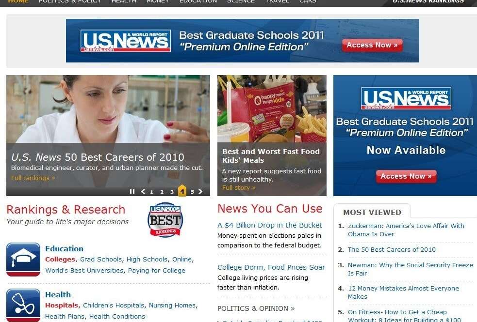 Us News & World Report imprimirá sólo las ediciones especiales sobre universidades y hospitales