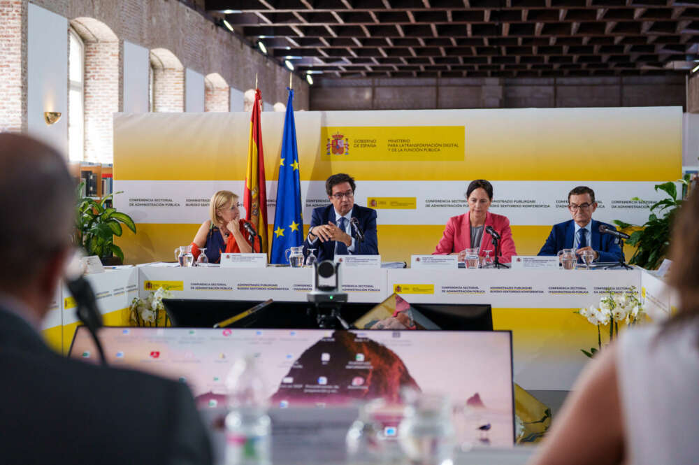 El ministro para la Transformación Digital y de Función Pública, Óscar López, acompañado por la directora general de Función Pública, María Isabel Borrás, y la secretaria de Estado de Función Pública, Clara Mapelli. Matias Chiofalo / Europa Press