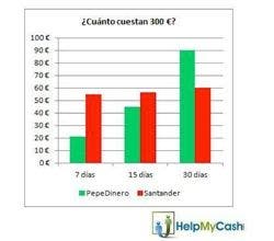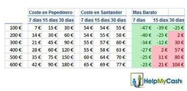 La tabla muestra claramente (cogiendo como ejemplos la empresa de mini créditos PepeDinero.com y el Banco Santander, con tarifas medias en el mercado) que en los importes más bajos y los plazos más breves es más barato solicitar un mini préstamo que permitir un descubierto en cuenta.