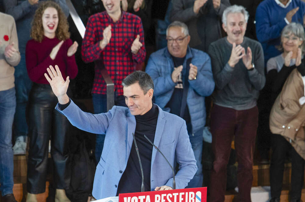 Sánchez repasó estos datos en un acto electoral en Vigo, después de destacar que el titular de Agricultura, Pesca y Alimentación, Luis Planas, presente en primera fila en el mitin, es un «pedazo ministro».