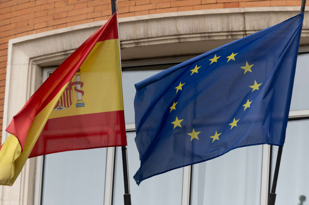 Archivo – Una bandera de la Unión Europea junto a una bandera de España, a 3 de enero de 2024, en Madrid (España).