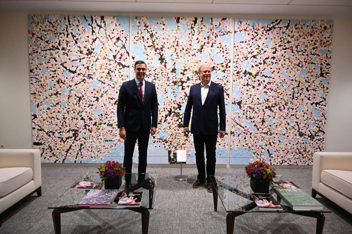 Pedro Sánchez y Larry Fink, en 2021 en Nueva York. Moncloa.