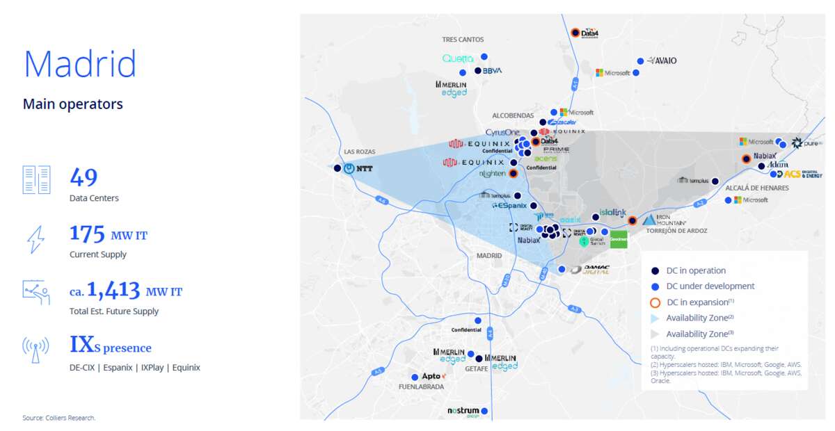 El objetivo implícito en el pipeline anunciado supone multiplicar casi por nueve esa capacidad en tres años. Un ritmo de crecimiento que, de materializarse, situaría al país entre los grandes hubs europeos del sector, a la altura de mercados consolidados como Frankfurt, Ámsterdam o Londres.