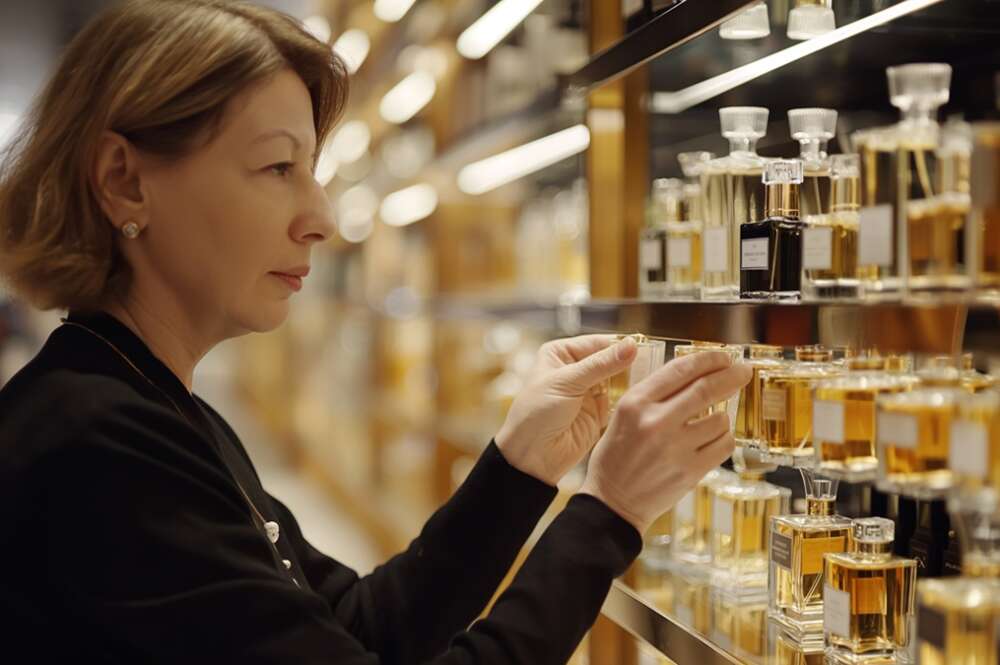 Una mujer observa unos perfumes en una tienda. Foto: Freepik