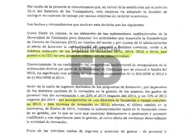 La Confederació de Comerç ha echado en los últimas semanas a la mitad de su plantilla. Miquel Àngel Fraile aducía en la carta de despido la bajada de las subvenciones para formación y, a la vez, la contratación de personal para cursos