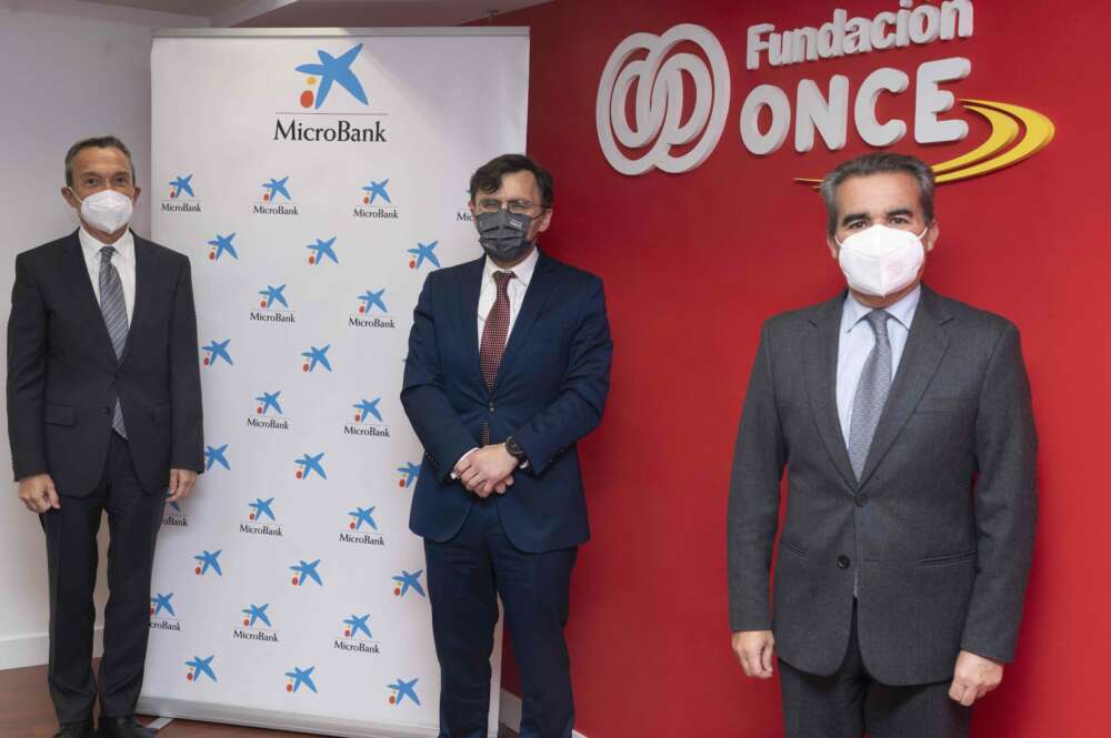 El acuerdo, suscrito por el vicepresidente primero ejecutivo de Fundación ONCE, Alberto Durán; por el director territorial de Madrid Metropolitana de CaixaBank, Rafael Herrador; y por el presidente de MicroBank, Juan Carlos Gallego, arranca con un millón de euros destinados a incentivar la actividad emprendedora, favoreciendo la igualdad de oportunidades.