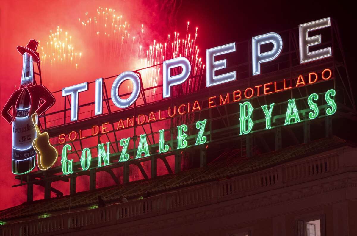 Vistas del cartel ‘Tío Pepe’ durante el encendido de luces de navidad, en la Puerta del Sol, a 23 de noviembre de 2023. Alberto Ortega / Europa Press