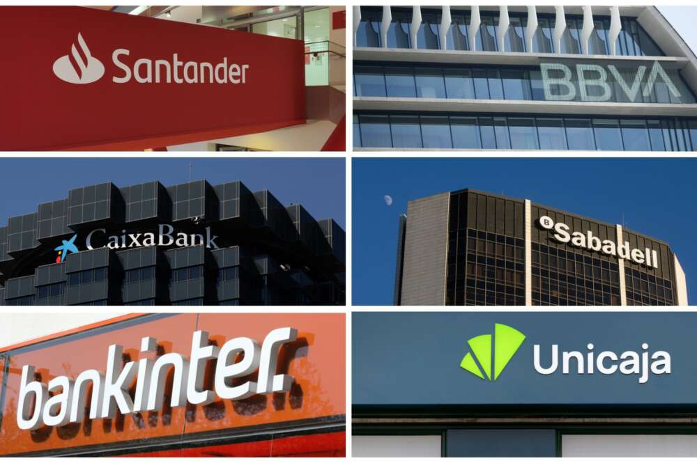 Logos de Banco Santander, BBVA, CaixaBank, Banco Sabadell, Bankinter y Unicaja