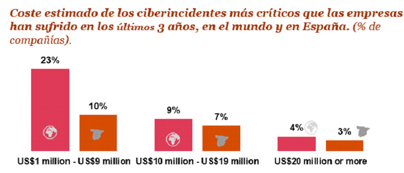 El estudio revela que tanto el número de ciberincidentes como el impacto económico que ocasionan a las empresas han vuelto a crecer. En los últimos tres años, el porcentaje de las compañías que han sufrido ciberataques críticos – con un impacto mayor al millón de dólares -, ha crecido hasta el 36%, nueve puntos más que en el informe anterior, un 20% en España. Los sectores más afectados por estos ataques de gran impacto han sido los de salud, tecnología, telecomunicaciones y entretenimiento, el sector financiero y el de energía.