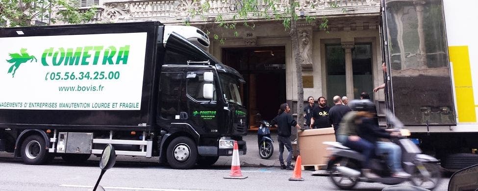 Operarios recogen las obras de arte del edificio Garriga Nogués y empiezan su traslado