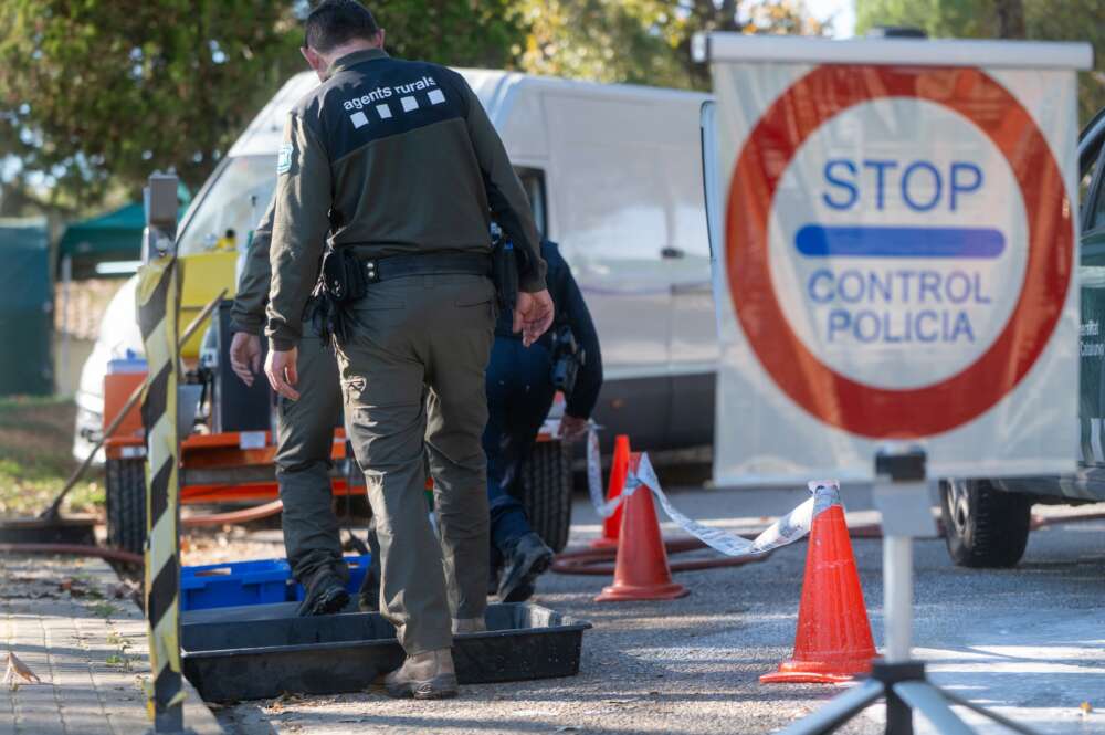 Efectivos de la UME en la zona en cuarentena por la Peste Porcina Africana en Torrefarrussa este lunes.